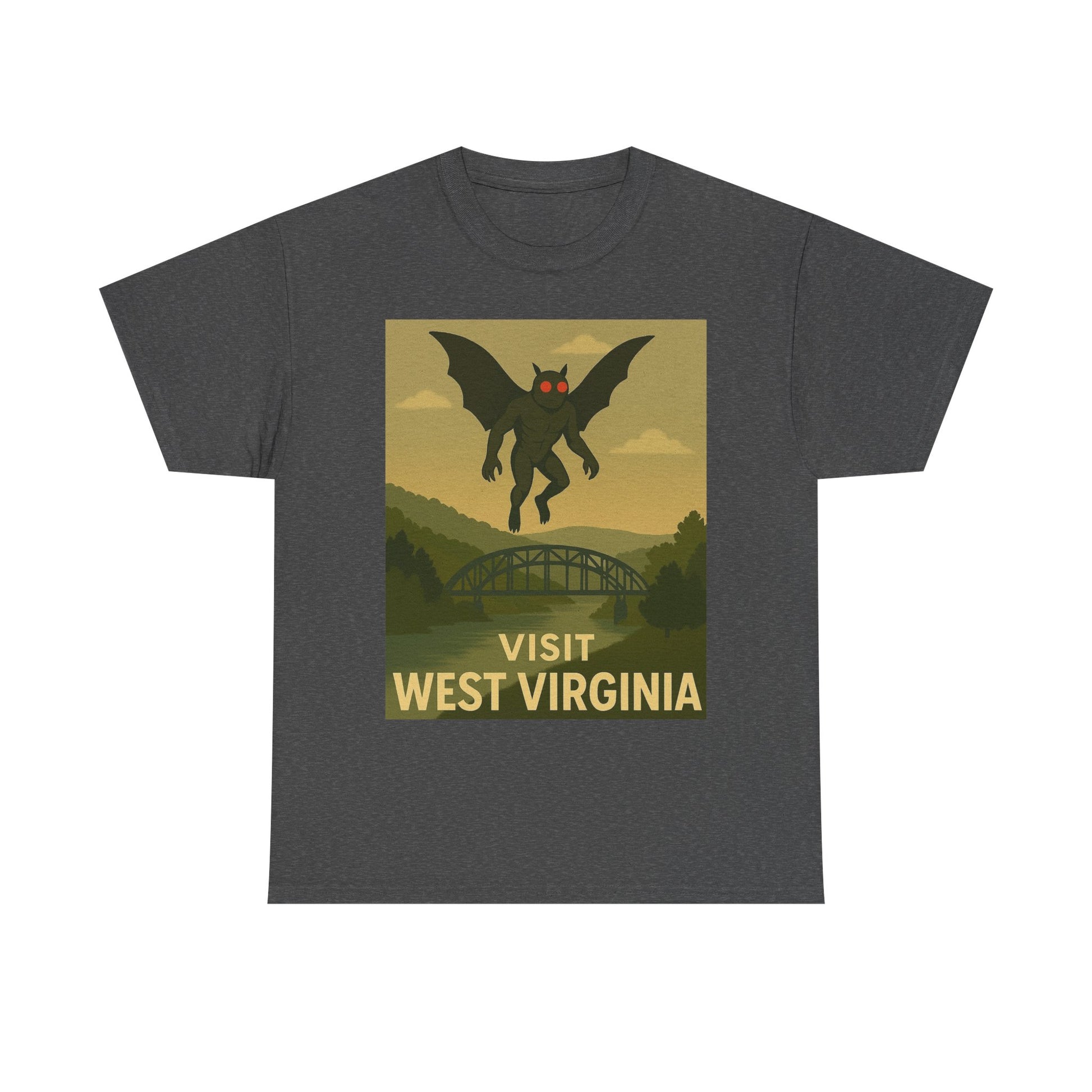 Embrace mountain state mystery with our retro-style West Virginia tee. This vintage-inspired unisex shirt features a cool Mothman design, perfect for travelers, cryptid enthusiasts, and anyone who loves unique apparel. It’s a great way to show your state pride with a touch of the weird and wonderful.