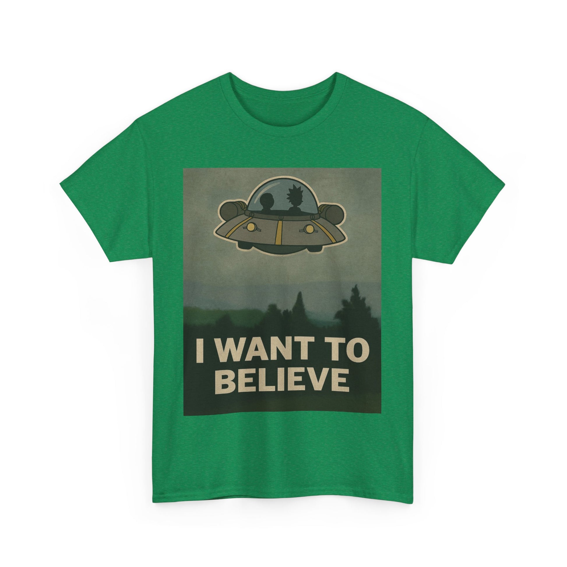 Rick and Morty “I Want to Believe” T-Shirt – X-Files Parody, Y2K Aliencore Graphic Tee